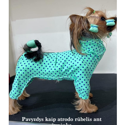 Pižama sukurta ir skirta parodiniams šunims, kurie yra rišami į papilotes. Medžiaga slidi ir nevelianti plauko, lengvai valoma ir prižiūrima. Galima naudoti ir nerišamiem šunim.  Pižama dėngia ir kakliuką.