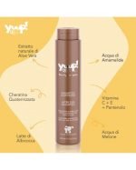 kvaternizuotu keratinu, vitaminais C + E + pantenoliu. Šampūnas apsaugo nuo kailio spalvos