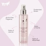 Maitinantis, kvapnus vandens purškiklis, praturtintas kvaternizuotu keratinu.
