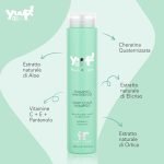 plaukų ir nekeičia jų tekstūros. Švelniai valo nešvarumus. Praturtintas alavijo, dilgėlių ir